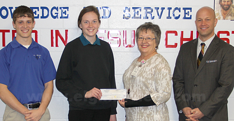The Pope John XXIII Central Catholic National Honor Society recently held a Pink Out and Gift Basket Raffle to help those recovering from cancer. The Pink Out was held during the last home basketball game at St. Boniface gym. Each NHS member donated a gift basket to be raffled that night and members sold tickets during the game. They raised $425 for the the Hope Fund at Faith Regional Health Service in Norfolk. The Hope Fund was established by a local cancer survivor to provide on-going funding for items and services that support cancer recovery and survivorship. 100% of the donations to the Hope Fund directly benefit patients with cancer. Representatives from Faith Regional Health Services, Jake Claussen, Executive Director of Faith Regional Health Services Foundation and Nita Totten, Hope Fund Administrator were presented the check by Pope John NHS President Scott Moser and NHS Member Terri Seier. Submitted