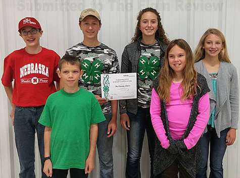 The County Liners of Tilden, with 33 busy members, was announced as the Outstanding 4-H Club of 2015. The County Liners meet each month, expect July, to hold a monthly business meeting which is ran by youth officers. In the past few years this club has reorganized to this historic club in our County and become active in their community. In 2015 the County Liners had multiple members take part in the sheep lottery project expanding their knowledge of animals (they didn’t have many sheep exhibitors before, but this year they were able to have a group/clubs entry at fair). This past year the County Liners adopted 2 miles of highway between Tilden and Meadow Grove, where they picked up trashed along the highway twice a year. In June, Club members volunteered for clean up after a banquet was held to help the father of one of the club’s families. In July, this club scraped and painted the wash stalls at the fairgrounds where that was not easy work. It looks very nice now! Thank you County Liners! Also, in the month of July, they took animals to the Prairie View for residents to see, touch, enjoy and ask questions. Recently, three of their members sewed heart pillows for the FRHS cardiac bypass patients.  For the fair the County liners also sponsored a buckle with their Large animal Herdsmanship premium money. They worked Friday night in the concession stand and had 2 members participate in the flag drill team prior to the ranch rodeo. County Liners held several great learning experiences and look forward to more in the next year with planned presenters(members giving demonstrations and speeches) a preholiday family style dinner to educate on manners, adopting a giving tree child or adult for Christmas (thanks to the group’s fundraising efforts), participating in our 3rd Horsebowl and mentoring a few more members in hopes of having a Jr and Sr team in the future,  attending Pitzer horse judging competition, and participating in the PSA competition. We also have several parents sharing their talents with the club for improved fair entries with cookies, cakes, welding, shooting, and sewing classes to continue again this year. County Liners is a very active 4-H club and they are always looking for ideas to remain active. 2015 was a fun and productive year for the members. They are very well represented at fair and at State Fair, but they also represented 4-H in their communities in parades, community service, and by inviting other youth to their club meetings. For the new 4-H year they already had a fall harvest party, have met for horse show committee and are planning to attend Horse Stampede again.