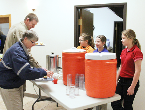 The Pope John XXIII Central Catholic juniors and the St. Boniface Elementary School 6th graders host a luncheon for the business community of Elgin each year during Catholic Schools Week. The meal is served at the Knights of Columbus Hall on main street in Elgin. Approximately 100 people were served this year. The students and their families donate the chili, veggies, and cookies. The lunchroom prepares the fresh bread. The students set up, serve and clean up after the lunch. Our businesses play a critical role in supporting our schools. . This is one way the schools express their gratitude for the support the businesses give all year. Shown are Eric and Gloria Lordemann from Lordemann Insurance Agency being served by Ally Selting, Marissa Preister and Ashtyn Meis. Photo and information submitted