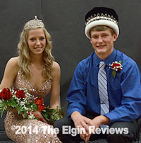 Sharla Schindler was crowned Queen and Kyle Heithoff King at last night’s coronation ceremonies for Homecoming at Elgin Public High School. Members of the Royal Court were (not in order of photo): Tera Henkenius, Lisa Dohmen, Victoriah Fangman, Sharla Schindler, Hayley Stamp, Kelsey Shoemaker, Tanner Welding, Christopher Bush, Tyler Smith, Truman Copeland, Kyle Heithoff, Ethan Fischer and Christian Dunn. Congratulations! E-R photos