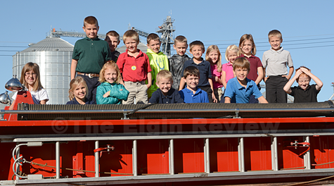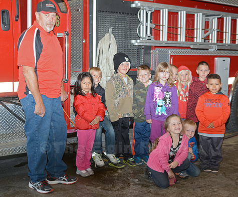 Shown here, first and second graders from St. Boniface are loaded on a fire truck and ready for their ride. Kindergarteners from EPS gather for a group photo in front on another fire truck inside the fire hall. E-R photos