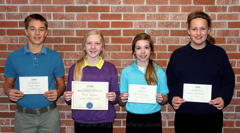 Certificates were awarded to the school’s winners: Faith Kinney (first place), Allyssa Burenheide and Hunter Charf (tied for second), and Marissa Preister (third place). Photo and information submitted.