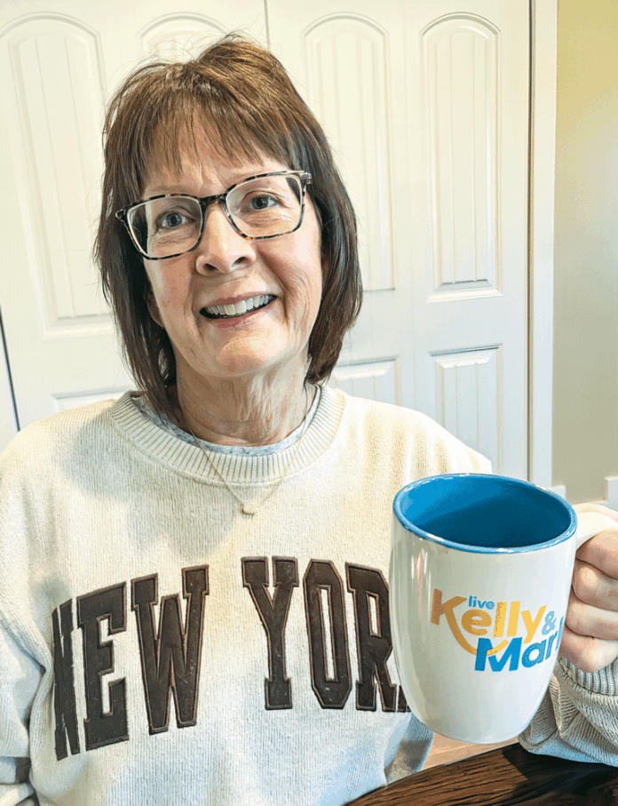 Dressed in her New York City souvenir sweatshirt and lifting a signature Kelly and Mark coffee mug, it’s an understatement to say she was bubbling over with excitement recalling the experience. Hardly taking a breath as she talked, maybe ecstatic is a better description.