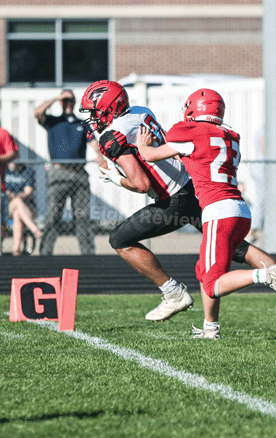 Eleven consecutive running plays, isolation and pitch plays to Grady Drueke and Jarek Erickson got the ball down to the Cards’ 11-yard line. After a touchdown was called back due to penalty, Kallhoff connected with sophomore Max Henn for a 20-yard touchdown strike with under a minute to play in the third quarter.