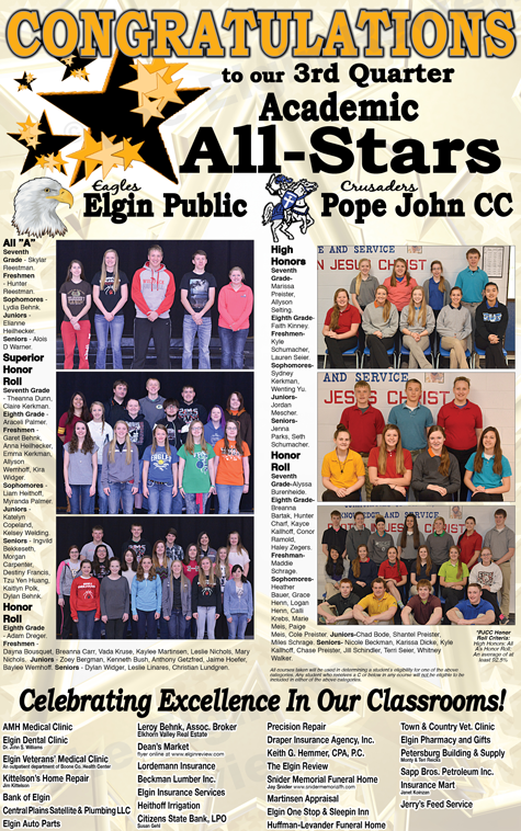 Third Quarter Honor Rolls Release From PJCC, EHS By Lynell Morgan - April 6, 2016 Honors Rolls From Elgin Nebraska Schools.