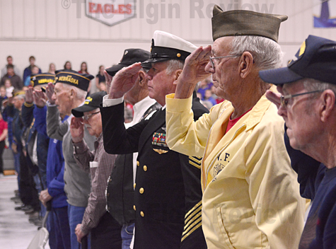 Nearly every folding chair was occupied, and bleachers on both sides of the gymnasium held students from Elgin’s three schools as an hour-long salute to veterans was held at the Elgin Public Schools gymnasium.